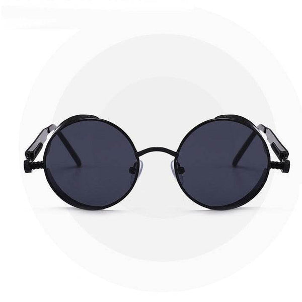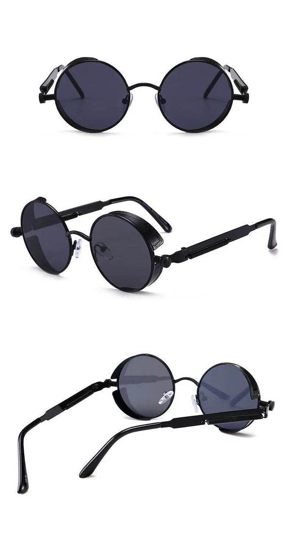 Steampunk Black Round Metal Sunglasses