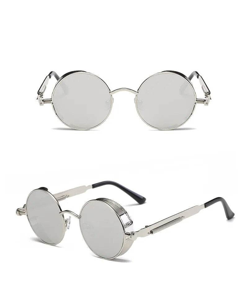 Steampunk Silver Mirror Round Metal Sunglasses