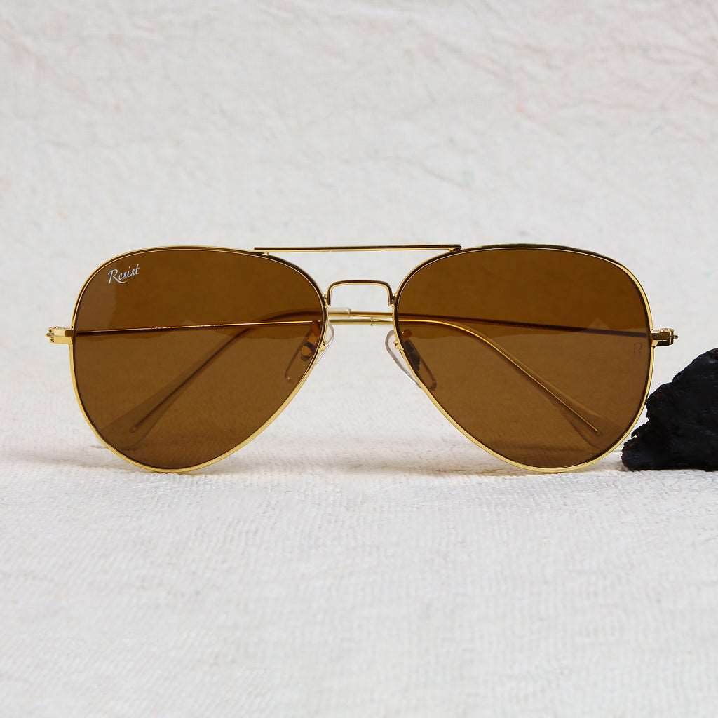 Buy Designer Gold Frame Brown Aviator Sunglasses for Men -SunglassesMart