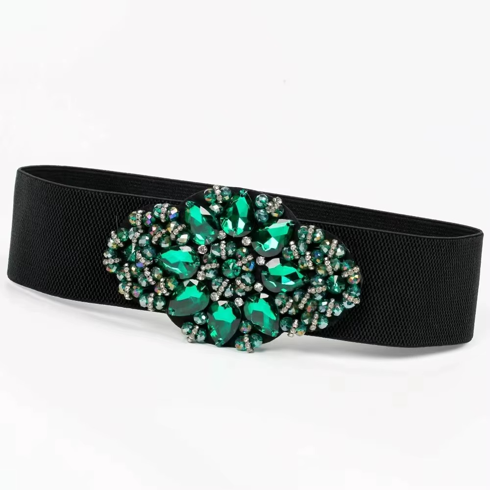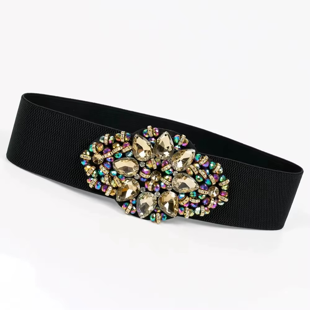 Luxury Women’s Rhinestone Waist Belt – Elastic PU Crystal Buckle Dress Belt