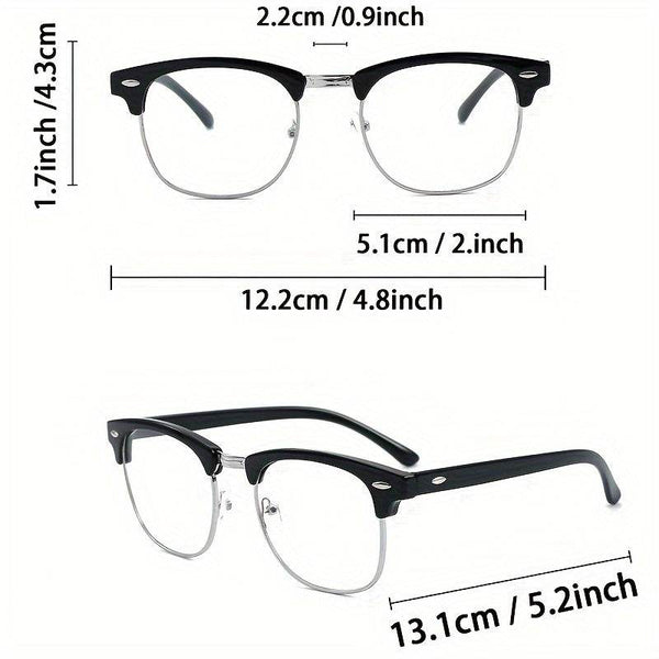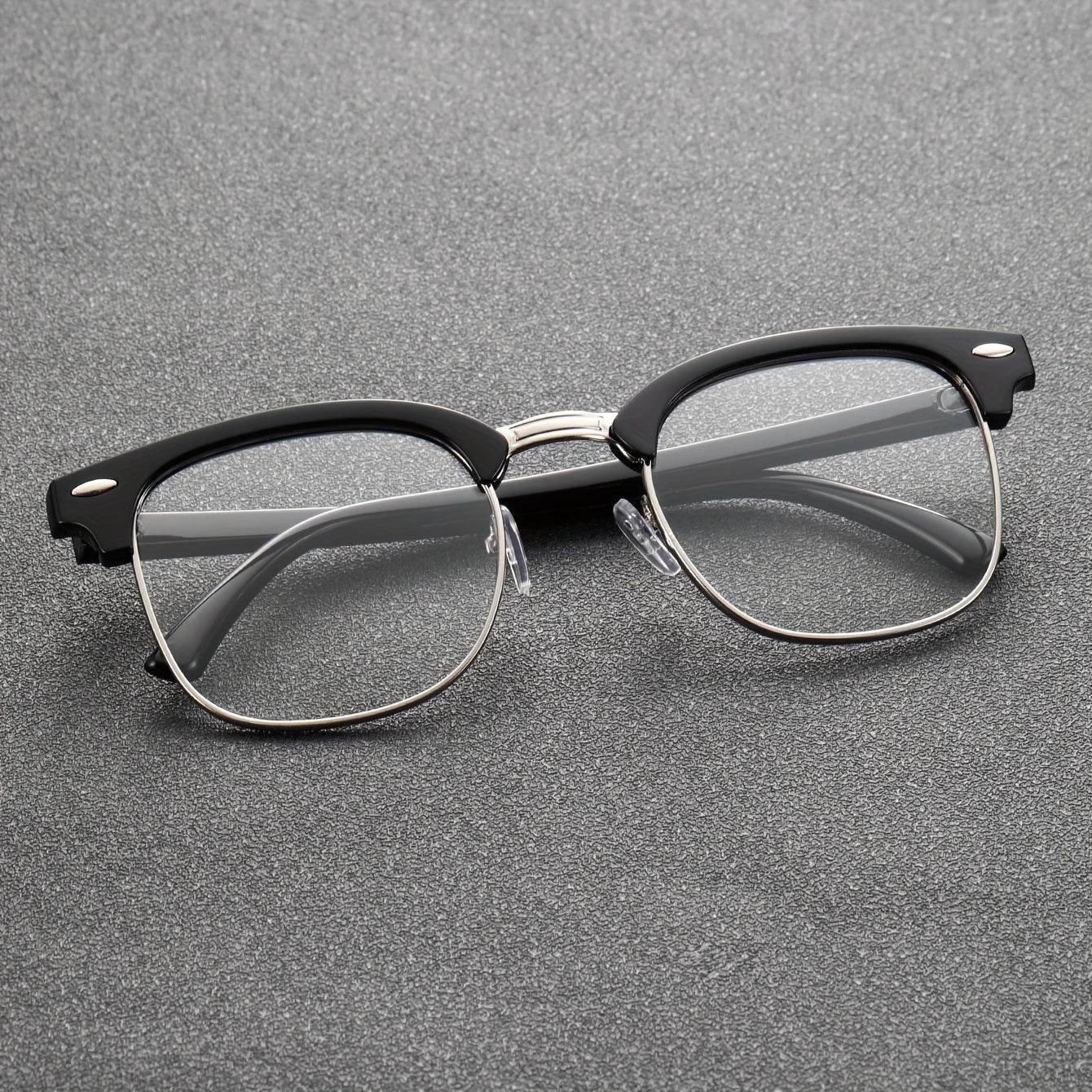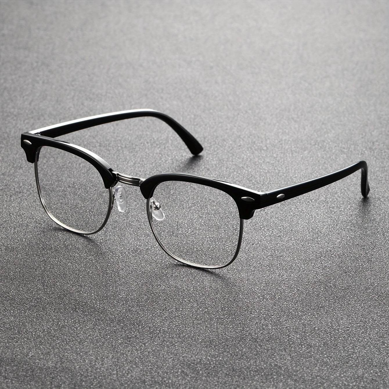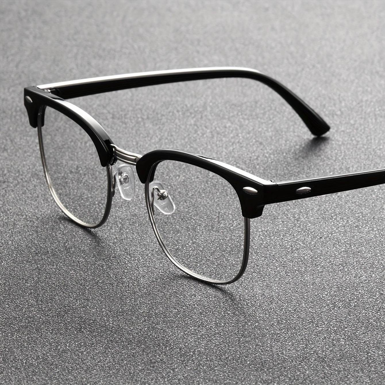 - Design: Black semi-rimless frame with subtle metallic accents for a sleek, modern look